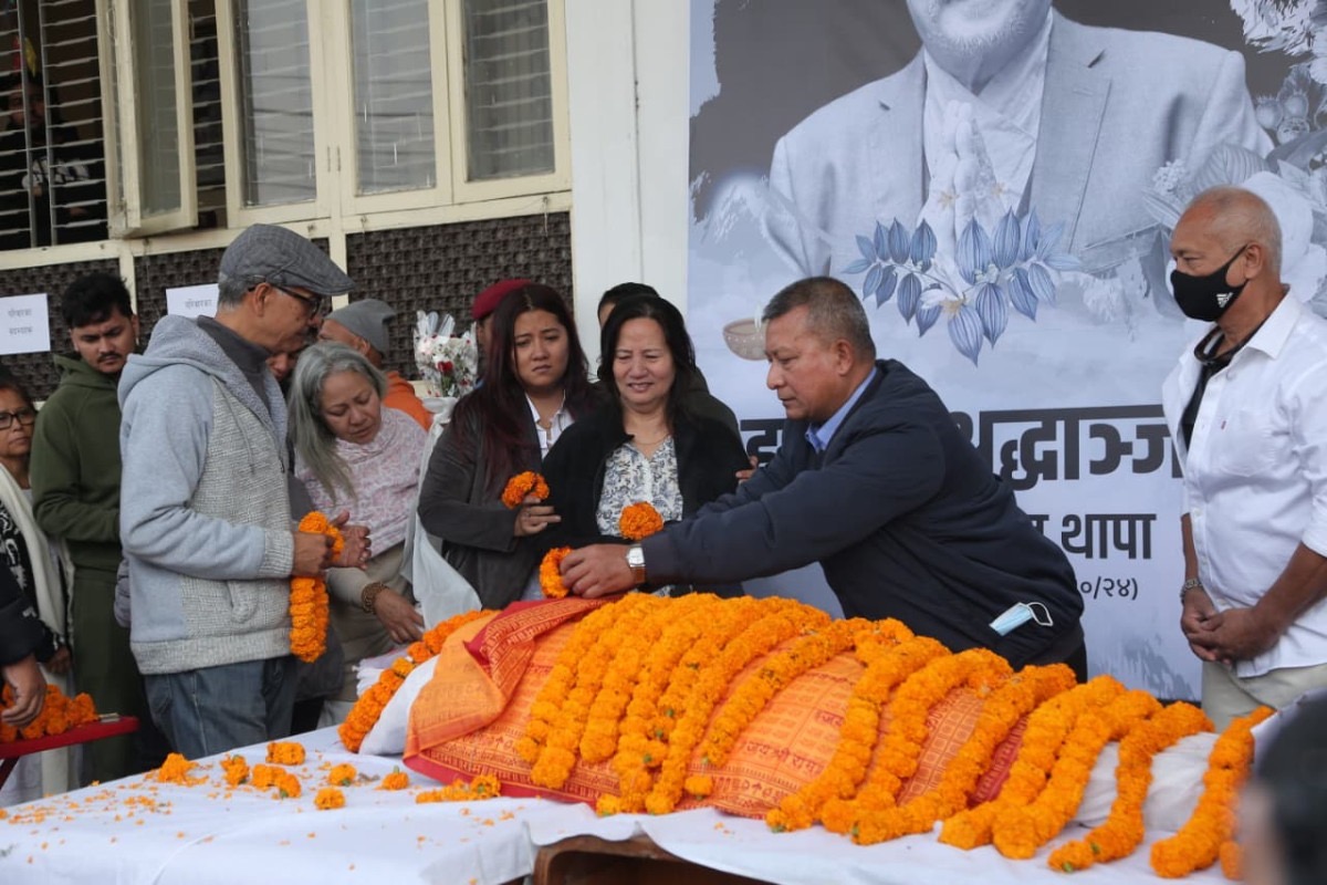 The body of veteran actor Sunil Thapa was kept at the Film Development Board on Sunday, where artists and fans paid tribute. Popularly known as ‘Raate Kainla’, Thapa passed away due to a heart attack on Saturday, leaving the Nepali film fraternity in deep sorrow.